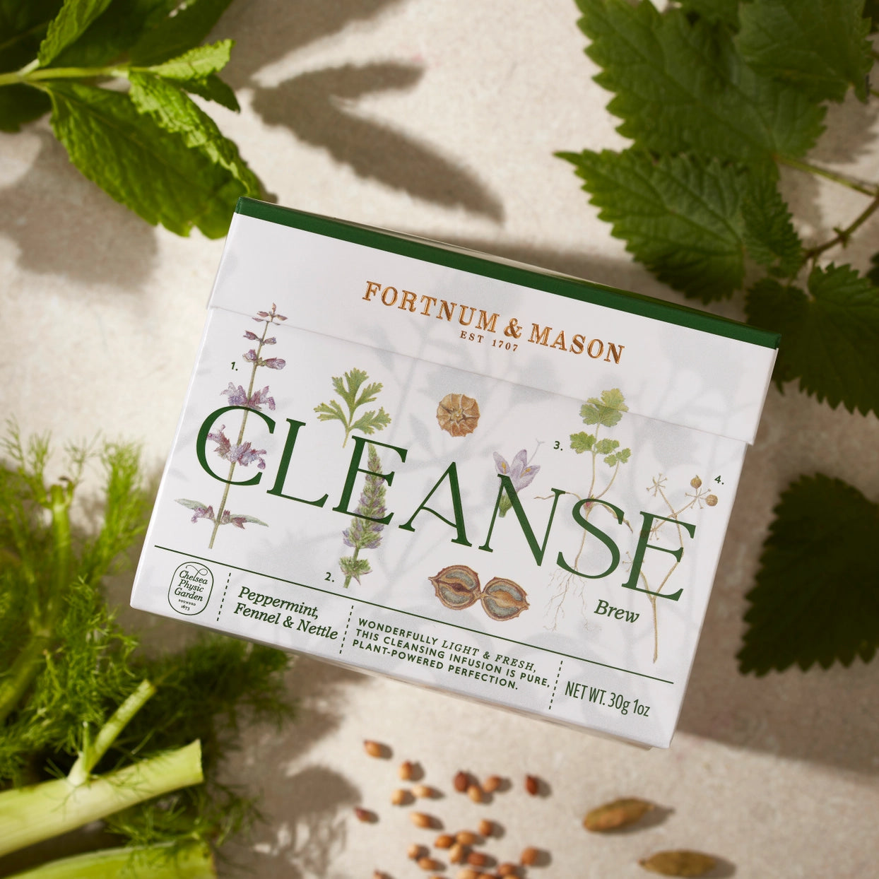 Flavour profile: This fresh, aromatic blend of peppermint, fennel and nettle draws on ingredients with a long history in traditional herb gardens and countryside foraging.