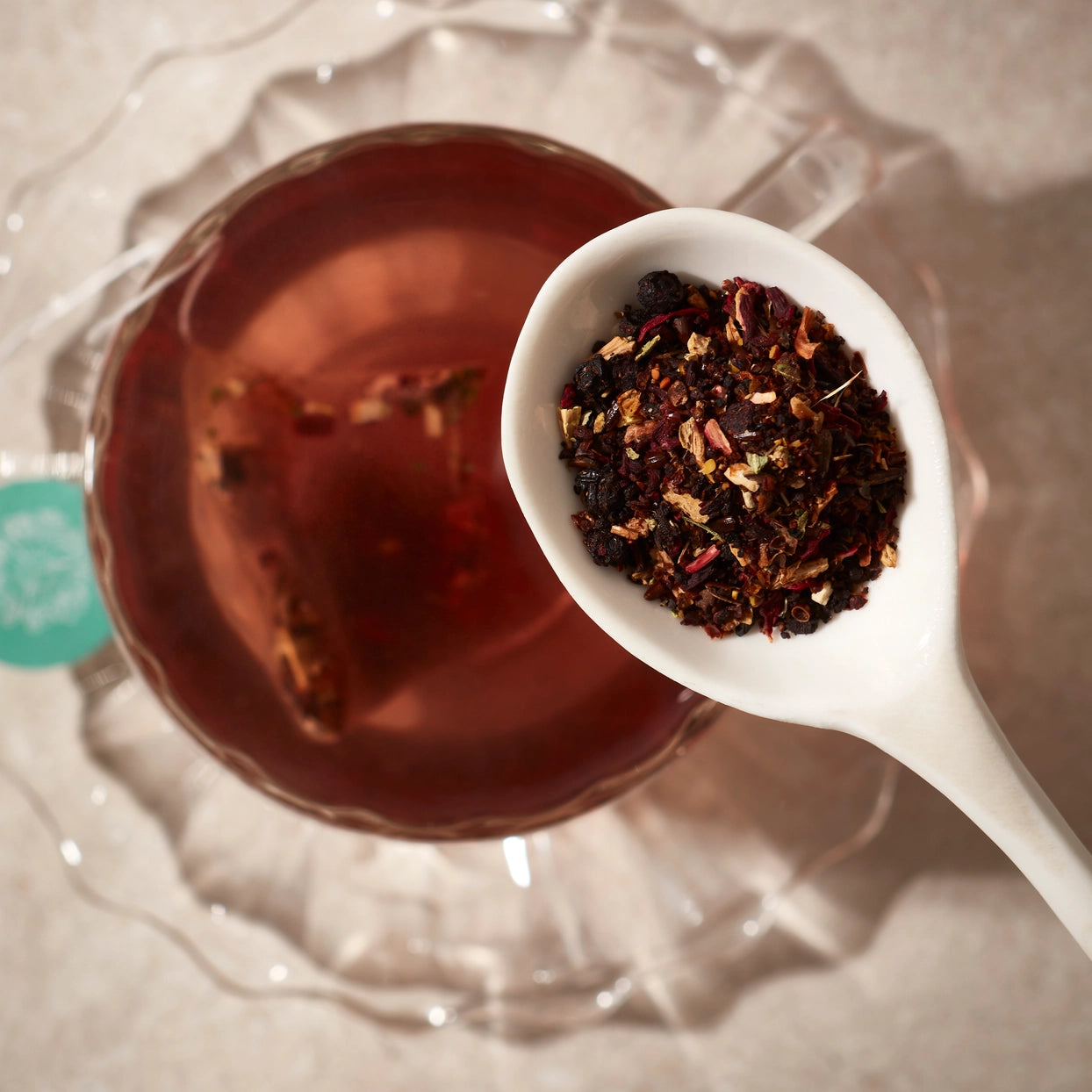 Sea Buckthorn (26%), Blackberries (20%, Bilberry (15%), Hibiscus, Elderberries (10%), White Hibiscus, Echinacea, Angelica Root (3%), Tulsi, Clove (1%)