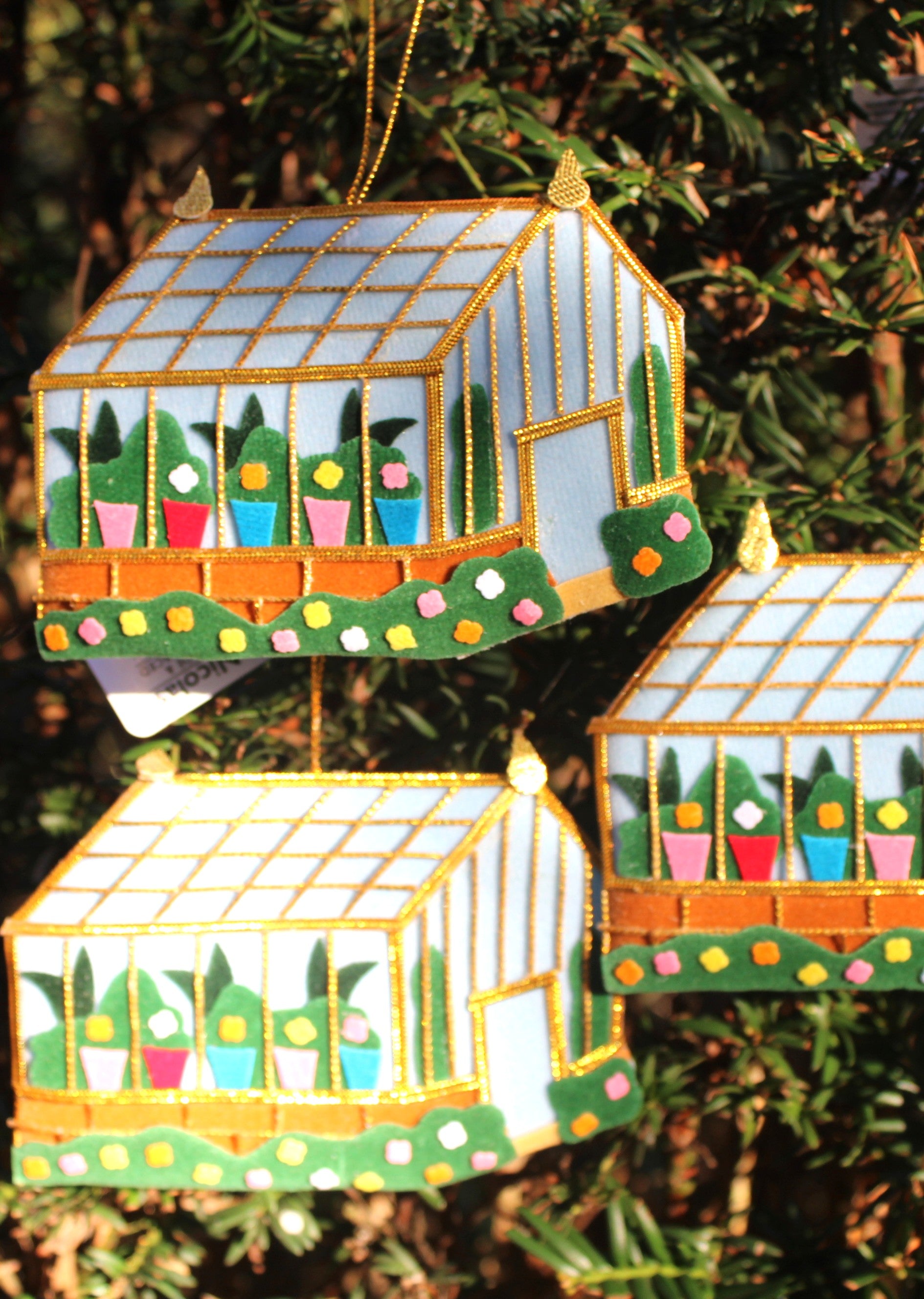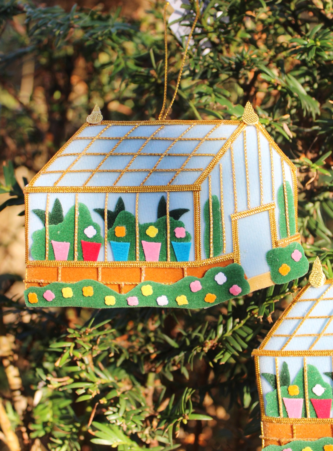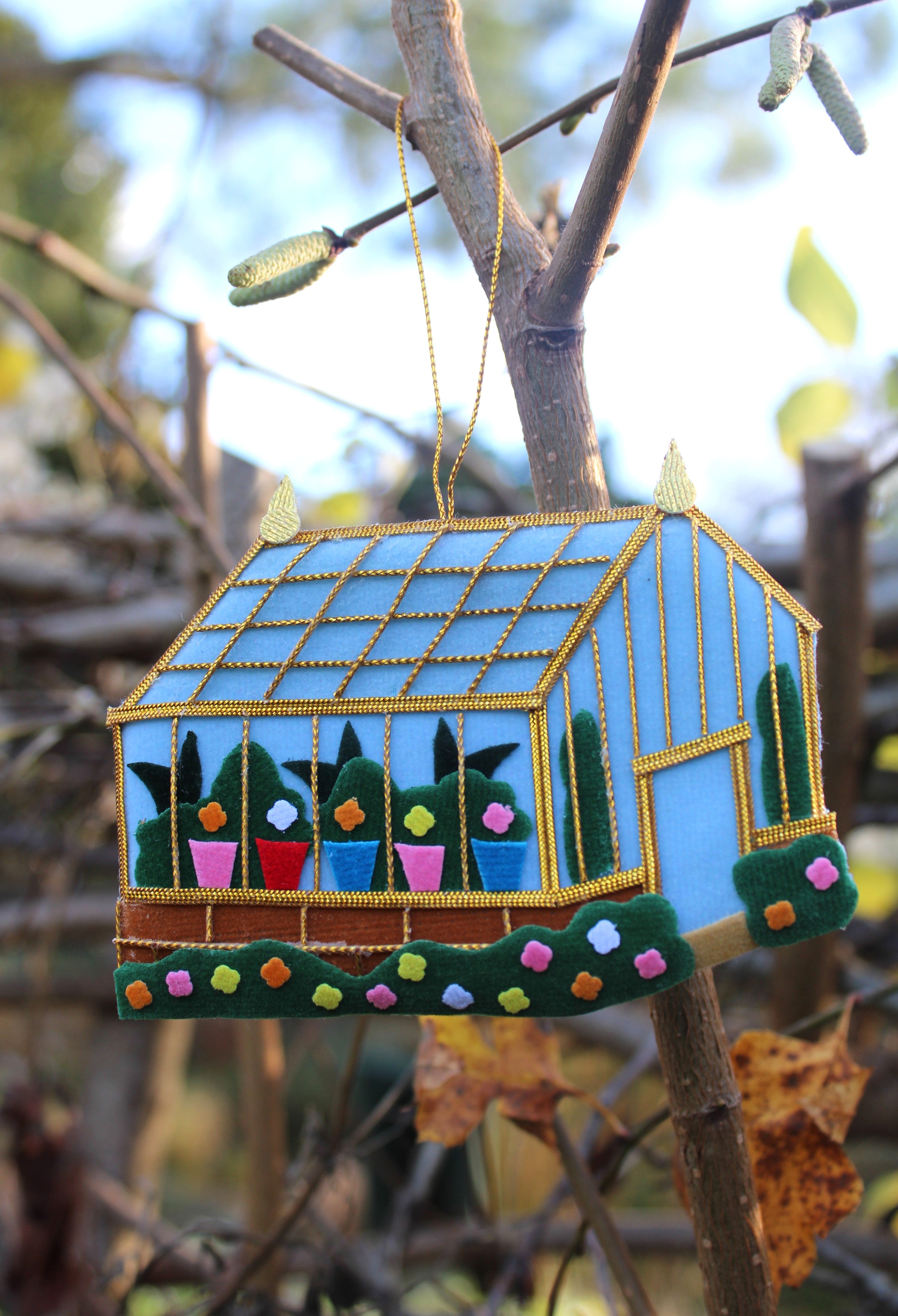 A beautiful handmade and ethically sourced decoration, featuring the CPG Pelargonium Glasshouse.