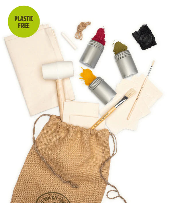 Unleash your creativity with our Natural Fabric Art Design Kit, featuring four captivating, ancient techniques: natural plant dye paints, charcoal, wax resist, and hapa-zome. Use nature as your muse to craft unique, original fabric designs that blend art and tradition.